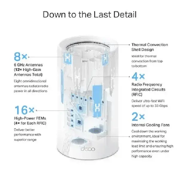 En casas grandes, especialmente en viviendas de varias plantas o con paredes gruesas o grandes distancias, el Deco BE95 destaca. Cada nodo tiene la potencia suficiente para cubrir entre 185 y 230 metros cuadrados, y al usarse en paquetes de 2 o 3, puede cubrir de forma fiable más de 557 metros cuadrados con un rendimiento constante.