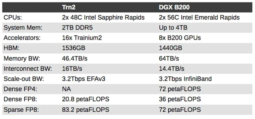Dicho esto, aquí presentamos un breve análisis de cómo se compara Blackwell B200 de Nvidia con las instancias Trn2 de AWS: