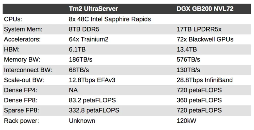 Si bien Tranium2 puede parecer un poco débil en una comparación chip a chip con los aceleradores más recientes de Nvidia, eso no lo explica todo.