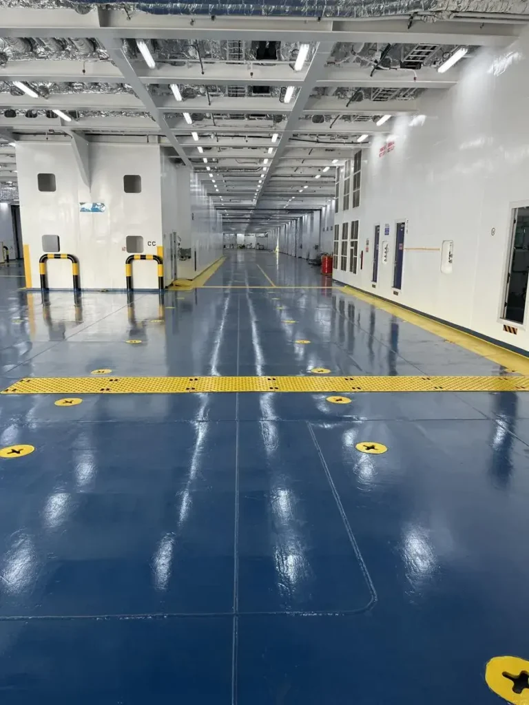 El buque también está equipado con siete ascensores para permitir un movimiento eficiente y puede acomodar más de 550 automóviles o 150 remolques de contenedores de 40 pies con su carril de 2.800 metros.