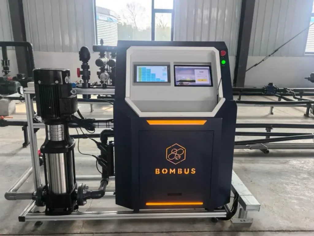 Liderados por Xiong Weihua, el grupo entró en un edificio con estructura de acero, donde se encontraban dispersos tanques de agua, filtros, bombas, tuberías e instrumentos. En una esquina del invernadero, un dispositivo parecido a un cajero automático, con el logotipo de la marca «BOMBUS», emitía un zumbido bajo y sus luces LED parpadeaban.