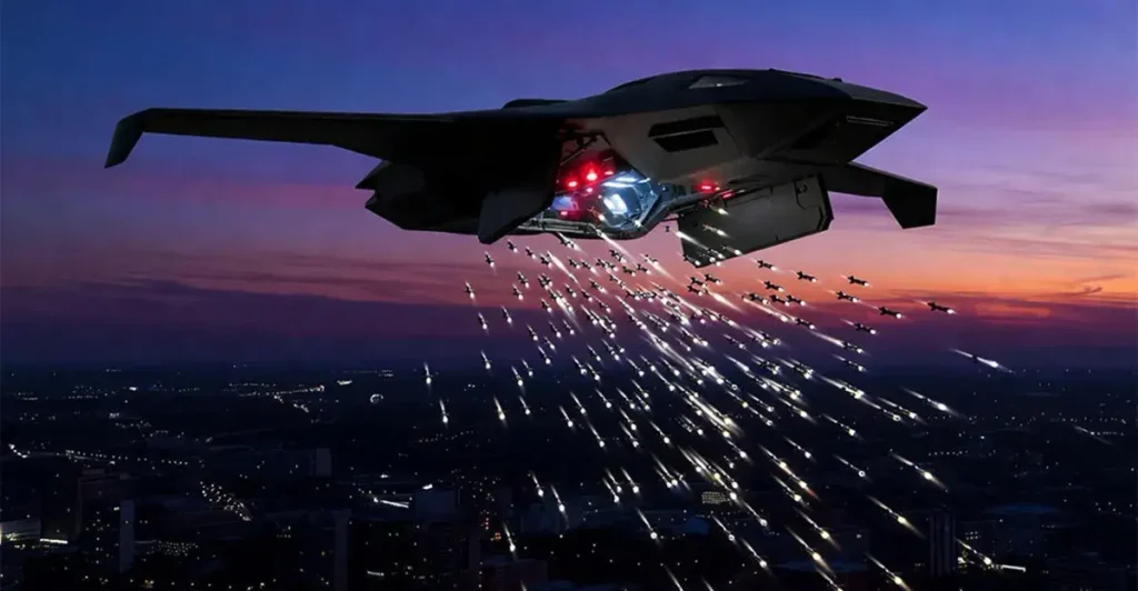 Las municiones merodeadoras, a menudo llamadas «drones suicidas», representan uno de los ejemplos más visibles de este cambio. Sistemas como el AeroVironment Switchblade pueden sobrevolar un área objetivo durante horas, esperando a que se active una señal de radar específica.