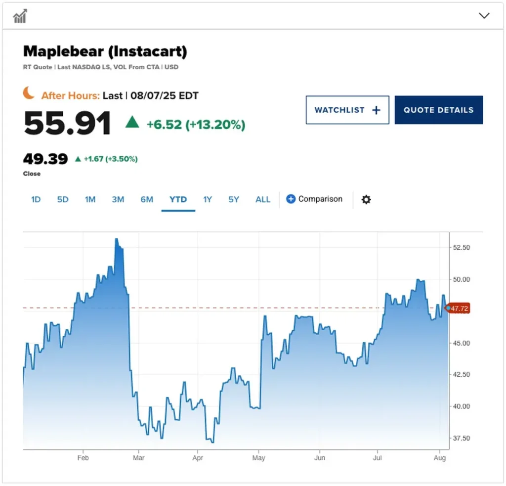 - Instacart publicó resultados del segundo trimestre mejores de lo esperado y emitió sólidas previsiones para el tercer trimestre.