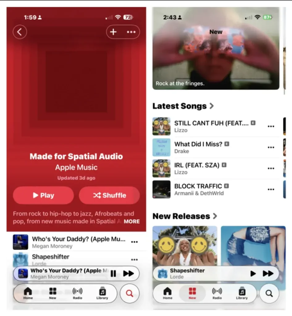 Por ejemplo, la barra de navegación de la app de música en streaming de Apple ya no muestra un ligero brillo en el fondo, y ahora es de un blanco más uniforme.