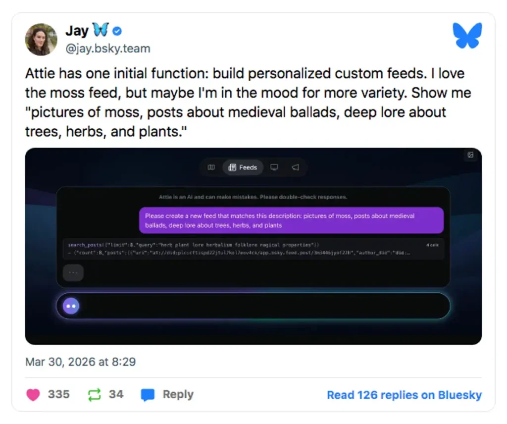 Bluesky ha lanzado un asistente de IA llamado Attie que permite a los usuarios diseñar sus propios algoritmos de redes sociales y crear feeds personalizados dentro del ecosistema AT Protocol de la compañía. Y digamos que la respuesta ha sido polémica.