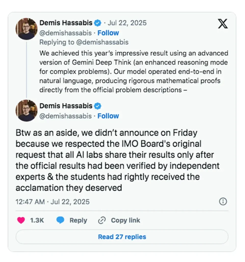 Poco después de que OpenAI anunciara su hazaña el sábado por la mañana, el director ejecutivo y los investigadores de Google DeepMind recurrieron a las redes sociales para criticar duramente a OpenAI por anunciar su medalla de oro prematuramente —poco después de que IMO anunciara qué estudiantes de secundaria habían ganado la competencia el viernes por la noche— y por no haber evaluado oficialmente la prueba de su modelo por parte de IMO.