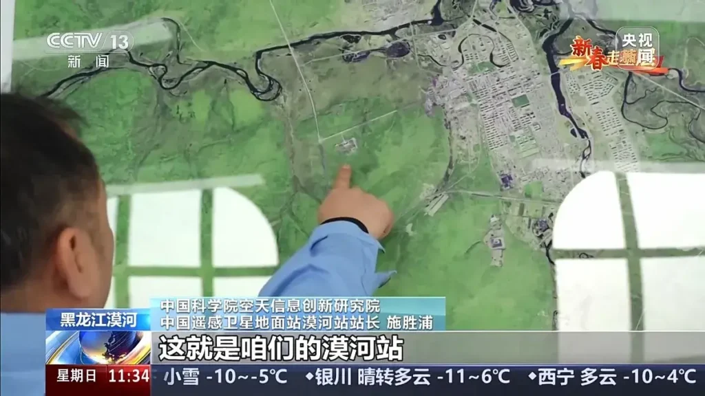 Shi Shengpu, Director de la Estación Mohe de la Estación Terrestre de Satélites de Teledetección de China, del Instituto de Investigación de Información Aeroespacial de la Academia China de Ciencias: Esta es nuestra Estación Mohe. Aunque es una estación pequeña, su alcance de recepción es amplio.